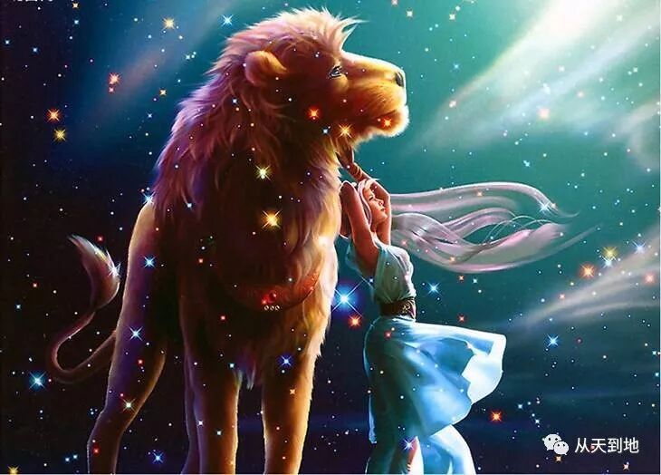繁星閃爍的太空中,一隻藍白色的大光球從遠方飛來,在我面前化作一頭威武的白色雄獅。它的眼睛是瑩藍色的,渾身散發出淡淡的藍光。
