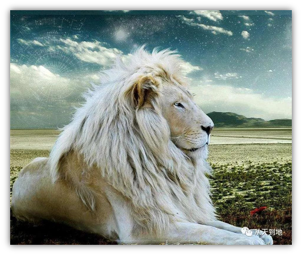 繁星閃爍的太空中,一隻藍白色的大光球從遠方飛來,在我面前化作一頭威武的白色雄獅。它的眼睛是瑩藍色的,渾身散發出淡淡的藍光。